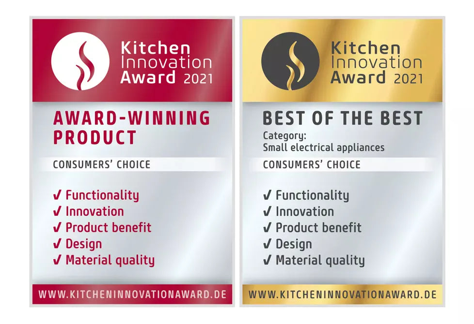 O sistema de cozinha AMC Premium foi premiado com o Kitchen Innovation Award 2021 e o Golden Award – uma prova clara de excelente qualidade e tecnologia de ponta. Em 2023, a AMC voltou a definir o padrão com a aplicação «Cook & Go» e ganhou o Kitchen Innovation Award pela facilidade de utilização, inovação e qualidade do design.