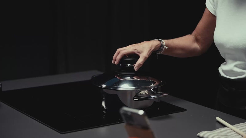 Com o sistema de cozinha inteligente AMC, pode combinar panelas, tampas e acessórios de cozinha da forma que for mais conveniente para si. Hoje cozinhe rapidamente, amanhã cozinhe a vapor, frite ou gratine – São inúmeras as possibilidades, máxima expansibilidade e 100% de individualidade.